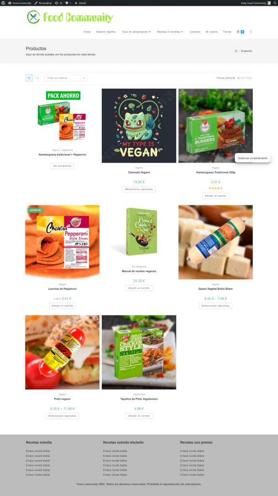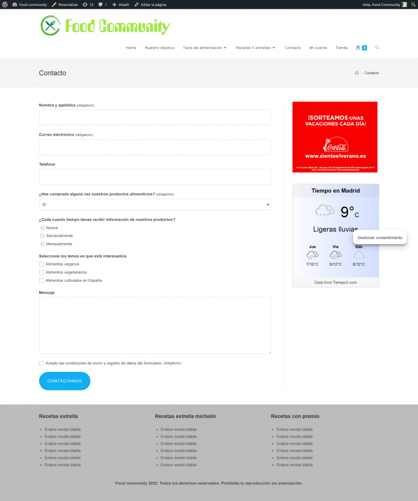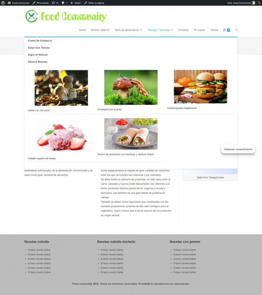 Con wordpress se han creado varias páginas, esta es una página de «comida» con texto falso.